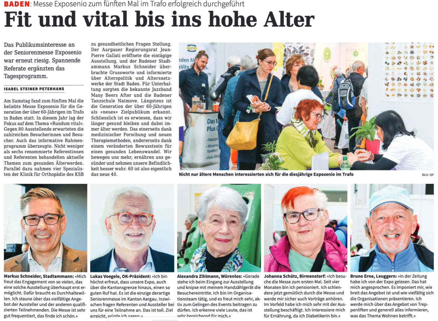 In der «Limmatwelle» finden Sie einen interessanten Bericht über die Besucher, die Aussteller und die Referate der EXPOsenio. Sie können den Artikel hier herunterladen.