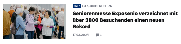 «Aargauer Zeitung», 13. März 2018: Keine Angst vor digitaler Welt» – Vorschau zur EXPOsenio 2018. Mehr …